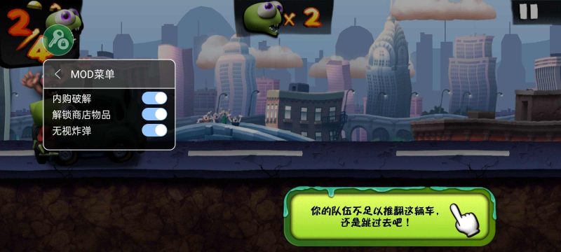 3、当僵尸数量小于车辆上方显示的数量时,就不足以推翻它,所以此时应该点击屏幕从车顶跳过它。