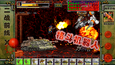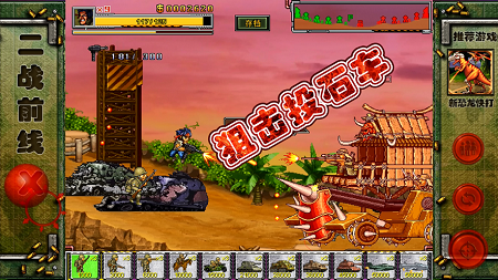 在二战前线,玩家可以在线打冒险,玩街机游戏,控制兵种打冒险,筹集资金招募更多部队加入战场。是怀旧的游戏画面。