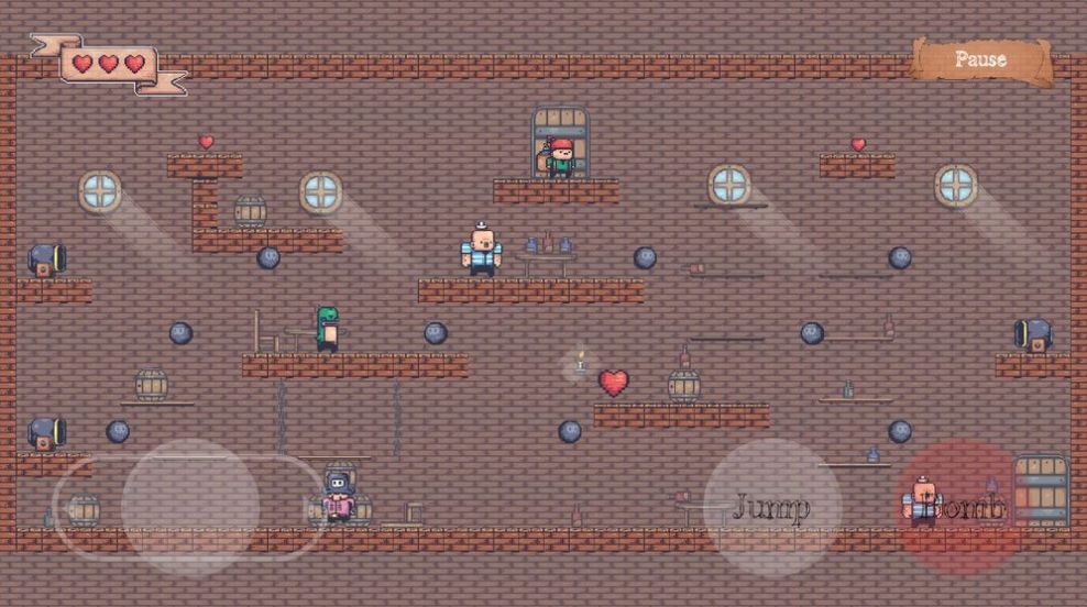 脂肪炸弹游戏是一款像素冒险游戏,精彩纷呈的关卡,经典复古的游戏主题。在脂肪炸弹游戏关卡中有许多道具和敌人。你需要杀死所有的敌人,合理使用舞台道具,简单操作就可以玩到经典游戏。你有三滴血通过关卡,所以你死后可以重新开始。