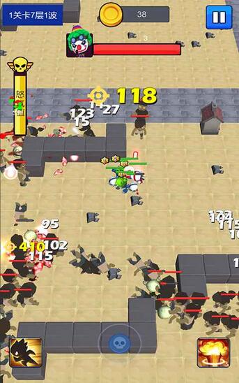 1.享受卡通场景战斗,提高自己的能力和属性,打败所有僵尸和敌人;