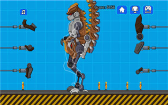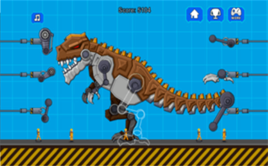 1.玩家利用游戏中一些零散的零件组装成一台强大的霸王龙机器;