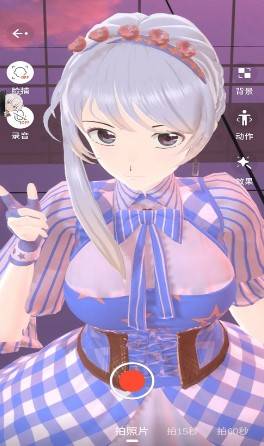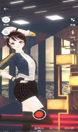 5.点击首页“虚拟拍摄”即可为你的角色拍摄照片。您可以随意调整特效和滤镜。您还可以使用面部捕捉,目前颈部和头部可以根据您在屏幕前的动作而变化。