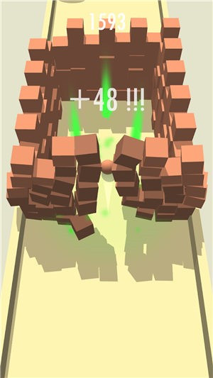 1.实际操作很简单,游戏中的球会随着指尖的拖拽不断向前移动,没有任何难度系数!