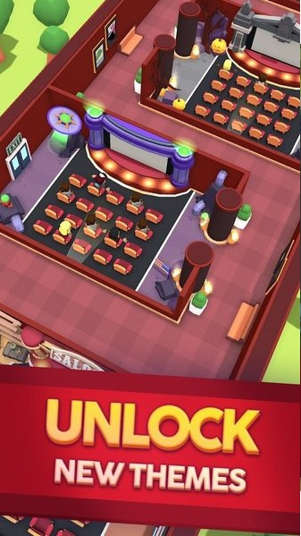 1.可爱的卡通模拟商业服务游戏,开电影院吸引大家看电影,显示屏设计方案精准。