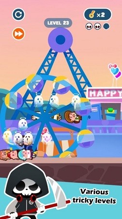 死神奥力给游戏是一款好玩又有趣的休闲冒险手机游戏。玩家会化身为死神,让游戏中的人经历各种意外,神不知鬼不觉的死去。经典角色的冒险经历充满乐趣,卡通画面为游戏增添了欢乐的气氛。