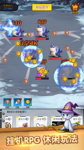 玩家进入游戏,就可以通关,一起放置。在任何时候,他们都可以升级更强大的武器,与更英雄的角色战斗,轻松击败更多的怪物BOSS。玩家可以体验放置升级的游戏挑战,所有战斗过程都可以尝试。