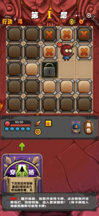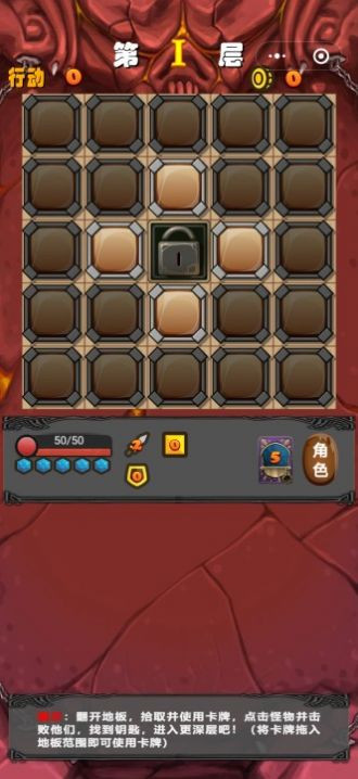 1.这个游戏是一个翻牌游戏。你需要打开地板,拿起卡片,点击怪物攻击他们,你可以找到下一关的钥匙。