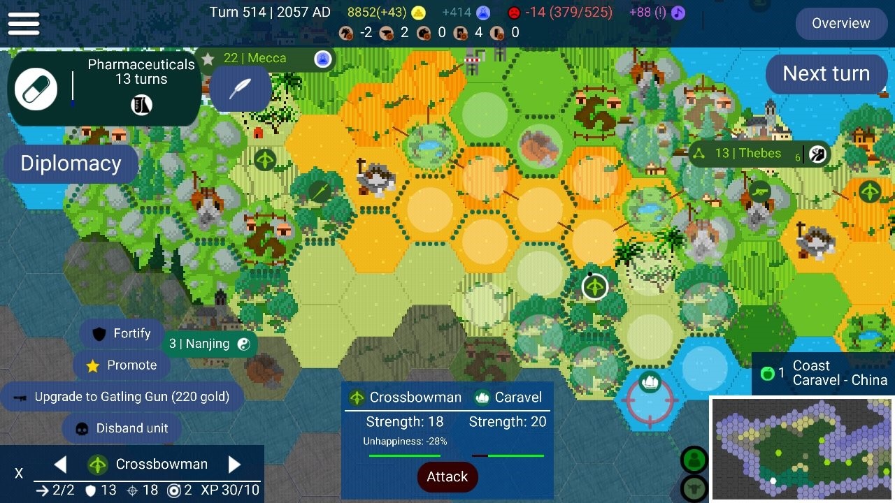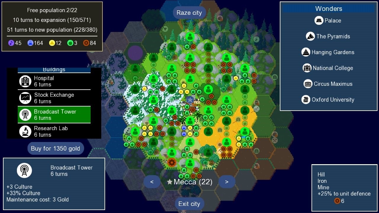 UnCiv是一个模拟建立帝国的战略管理类型的游戏。是经典的简约像素画风,以上述古文明时期为背景。玩家可以体验不同文明和势力之间的交流或战争。