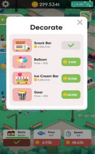 3.游戏玩家可以制造大量的钓鱼台来招募大量的消费者,获得的积分可以用来升级你的职业技能。