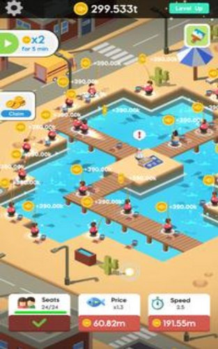 放置渔场大亨是一款可玩的休闲模拟操作游戏。游戏中会有各种各样的问题等着你去解决。它还增加了不同的玩法和各种职业技能,还有大量的放置和升级因素等着你去发现。赚很多钱,用这些财富让你的渔场更豪华,得到很多有趣的鱼,建造一个著名的最豪华的渔场!