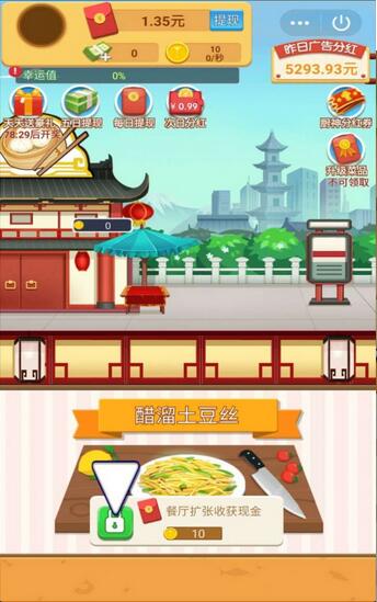 3.游戏里有很多制作包。只要雇个厨师,就能提高红包效率。打开红包。
