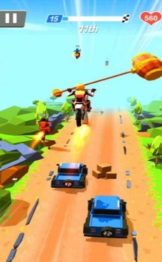 热血格斗摩托是一款操作性很高的摩托车赛车游戏。玩家可以在游戏中发起赛车挑战,不断超越你的对手获得更高的分数,通过各种格斗干扰击败你的对手,从而在游戏中赢得一次又一次的对抗胜利。